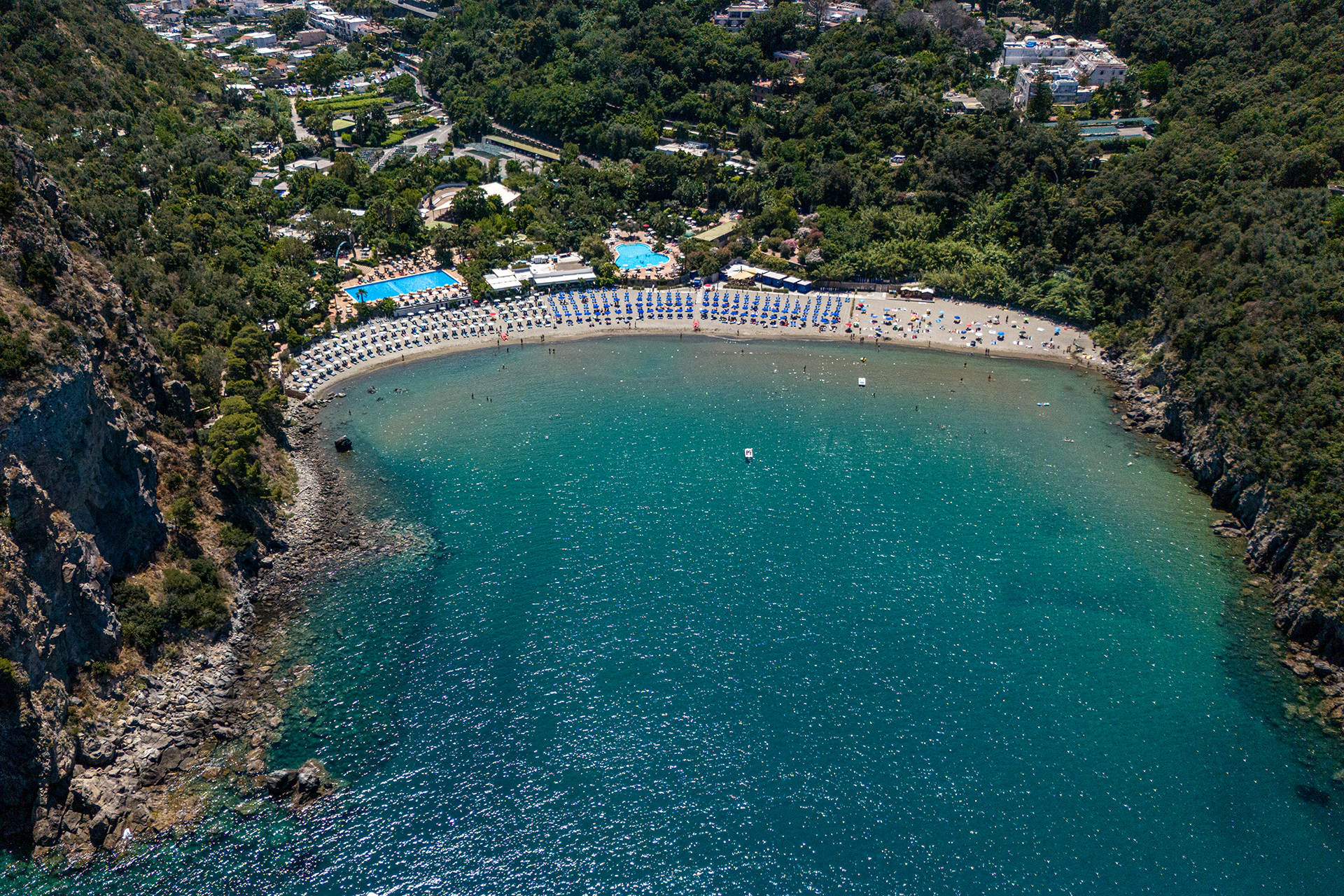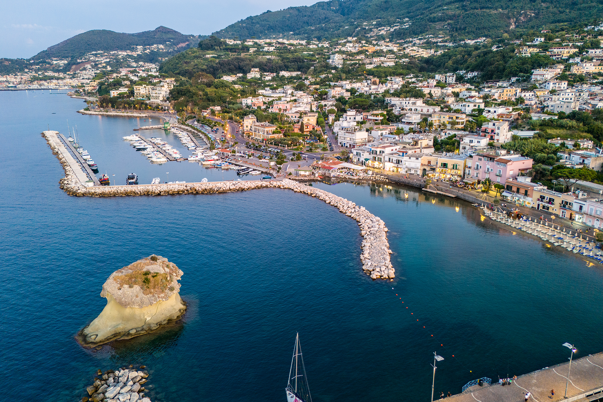 Lacco Ameno, the smallest of the municipalities on the island of Ischia, is a jewel of history, nature and culture. Here is the Nestor Cup, one of the oldest documents of Greek writing, preserved in the Pithecusae Museum of Villa Arbusto, which testifies to the archaeological importance of Pithekoussai, the first Greek settlement in the West. The area, a natural amphitheater on the sea, offers unique experiences: from the spectacular San Montano beach with its fine sand and crystal clear sea, to the Monte Vico path which crosses the Mediterranean scrub to offer breathtaking views. The iconic symbol of the town is the Mushroom, a particular green tuff rock shaped by the wind and waves.